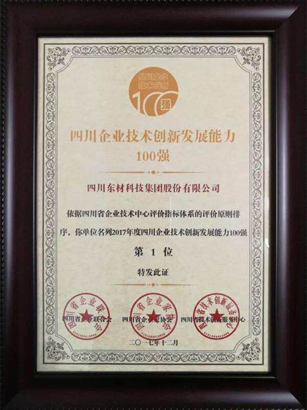 四川企業(yè)技術創(chuàng)新發(fā)展能力100強是在四川省第十四次發(fā)布四川企業(yè) 100 強排序、第五次發(fā)布四川制造業(yè)企業(yè) 100 強排序和第六次發(fā)布四川服務業(yè) 50 強排序時,推出的另一個具有指導意義的排序,由四川省企業(yè)聯(lián)合會/四川省企業(yè)家協(xié)會、四川省技術創(chuàng)新服務中心首次推出并進行公開發(fā)布。排序是依據(jù)四川省企業(yè)技術中心評價指標體系的評價原則,以審核數(shù)據(jù)為基礎,按照得分高低排序而評出。與此同時,我公司在四川制造業(yè)企業(yè) 100 強中位列第54名。